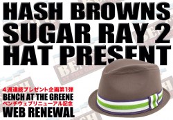本日、WEB SITE がリニューアルいたしました。 それを、記念して 4週連続プレゼント企画を開催中です。 第一弾は、只今大人気の HASH BROWNS "SUGAR RAY 2" HATをプレゼント。 みなさん、ぜひチェックしてみてください。 今後、楽しい企画も多数ご用意して...